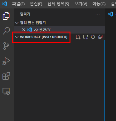 - 상단에 드랍다운 목록 노출 : Open Folder in WSL.. 클릭
