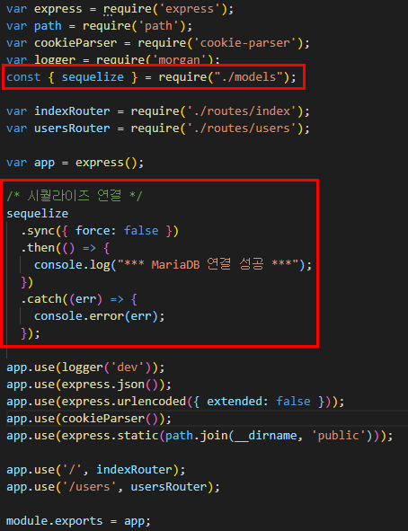 /* 시퀄라이즈 연결 */