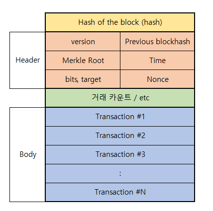 - 블록의 바디 부분에 저장된 트랜잭션(거래정보) 들의 해시트리