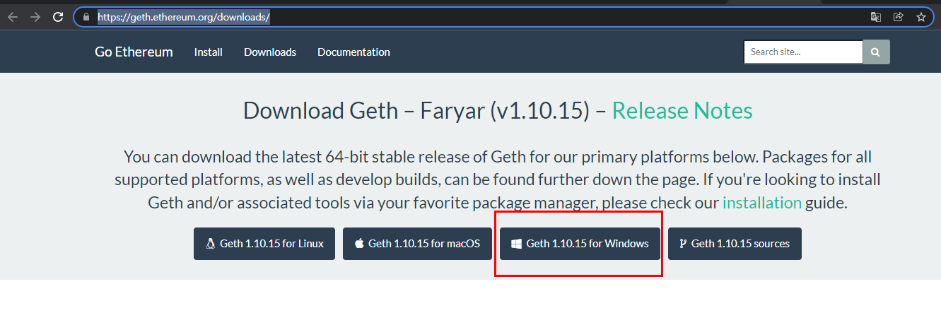 1. 위의 링크를 방문 하여 윈도우용 Geth를 다운