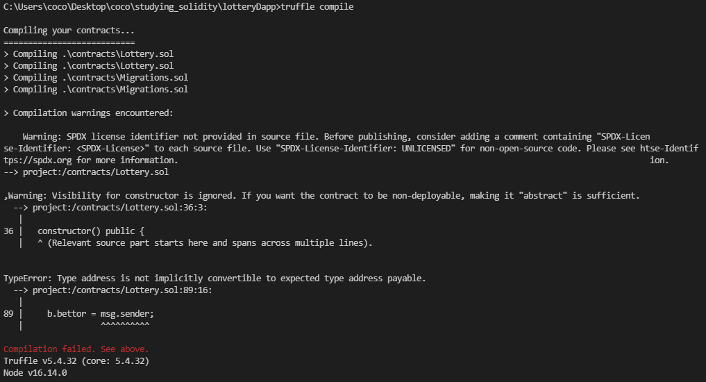 [솔리디티][디앱] lottery - Lottery Bet 함수 구현 본문