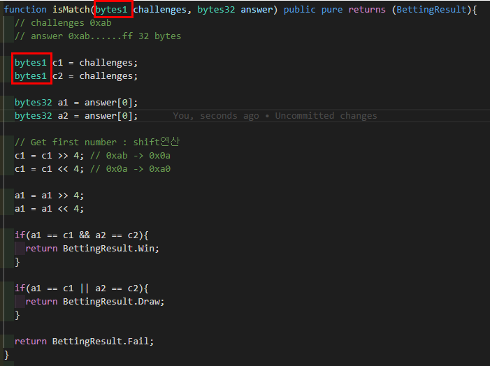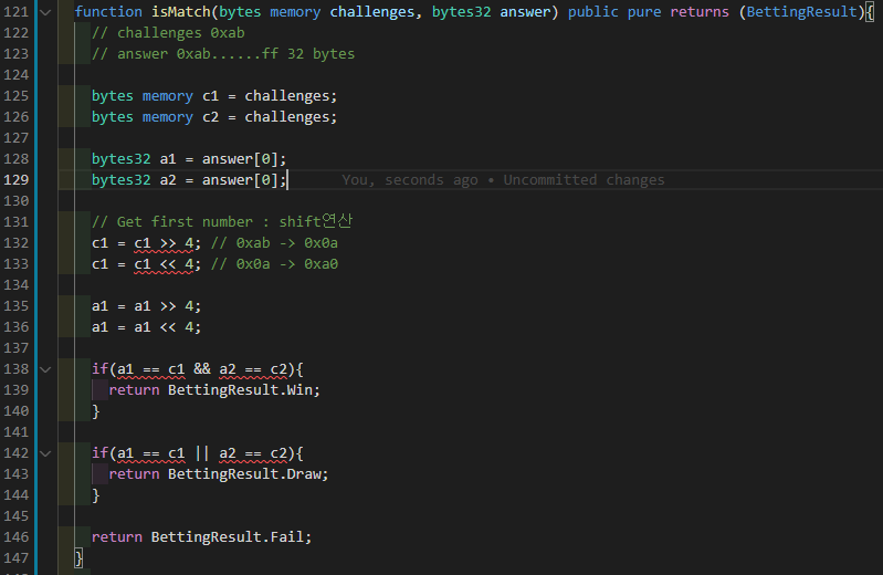 contracts/Lottery.sol isMatch 함수 작성