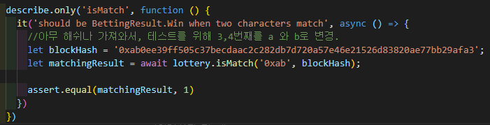 [솔리디티][디앱] lottery - Lottery isMatch 함수 구현 및 테스트 본문
