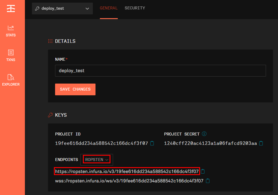 - infuraKey 값을 위의 주소에서 v3/ 뒤의 값으로 변경