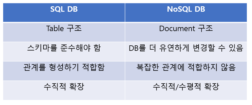 SQL에서는 엄격한 스키마(데이터 저장 구조)를 원칙으로 하기 때문에, 스키마에 맞지 않는 형식의 데이터는 저장할 수 없습니다.