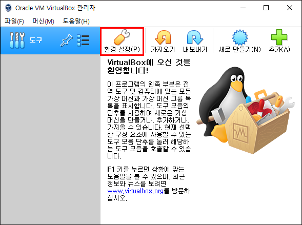 - VirtualBox (컴퓨터 가상화 프로그램) 다운로드 : https://www.virtualbox.org/
