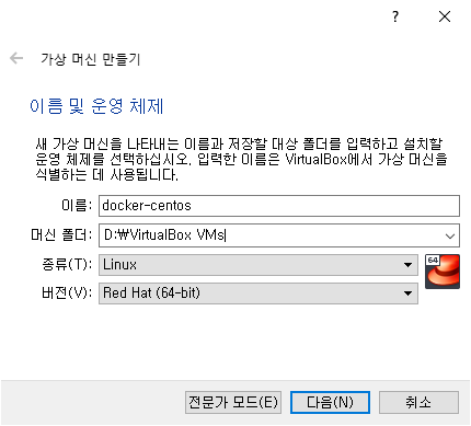 - 똑같은 과정으로 docker-centos 가상머신 생성