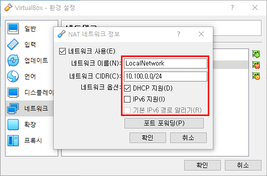 3. NatNetwork를 더블 클릭 하면, 설정 변경할 수 있는 창이 팝업