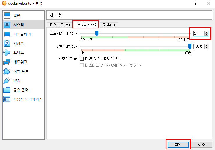 4. docker-ubuntu 가상머신의 설정 값 변경하기
