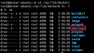 - 컨테이너 이미지 레이어가 들어가는 위치 : /var/lib/docker/overlay2
