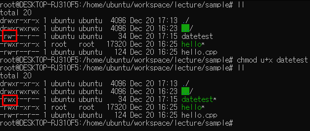 | 읽기 (r) | 파일 내용 읽기 | 디렉터리 내 파일 목록 읽기 | read() 로 읽기 | cat |