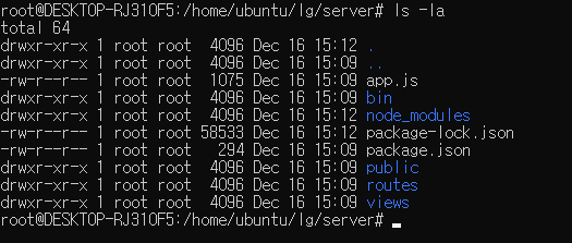 - 우분투 내에서 npm i 를 하여 의존성 모듈 설치 완료