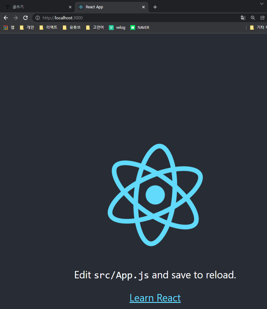 $ cd hello-react : 생성된 app의 경로로 들어간다
