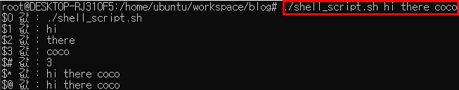 - 매개변수 : 스크립트 이름 다음에 공백 문자로 구분된 각 단어