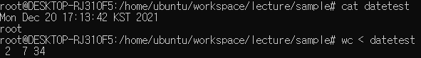 - wc : 텍스트의 줄 수 (2) , 텍스트의 단어수 (7) , 텍스트의 바이트 수 (34) 의 3가지 값을 나타냄.