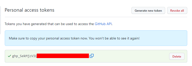 만약 생각나지 않는다면 토큰을 다시 생성 해야한다.
