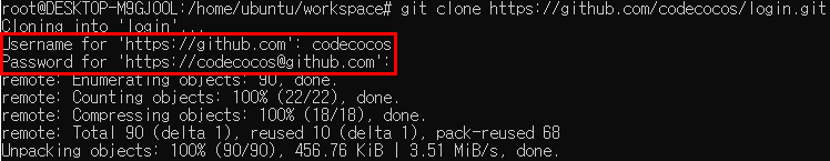 - Password for 'https://codecocos@github.com': 요구사항 충족 시킴