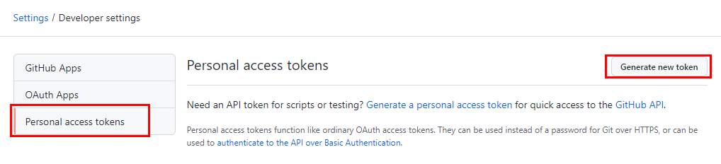 3. Personal access tokens 클릭, Generate new token 클릭