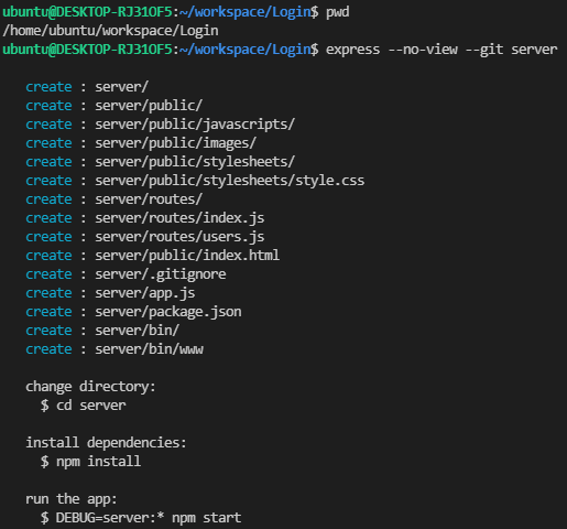 1. 원하는 경로에 위치하고 express 명령어 실행