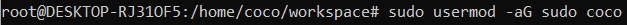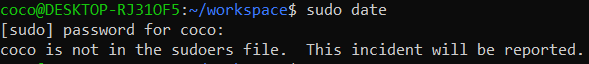 - 아래와 같이 sudoers 파일에 coco가 없어서 date 명령어가 실행되지 않음.