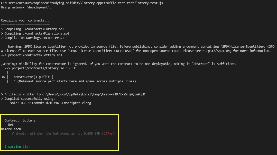[솔리디티][디앱] lottery - Lottery Bet 테스트