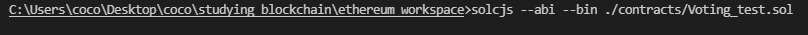 solcjs --abi --bin ./contracts/Voting_test.sol
