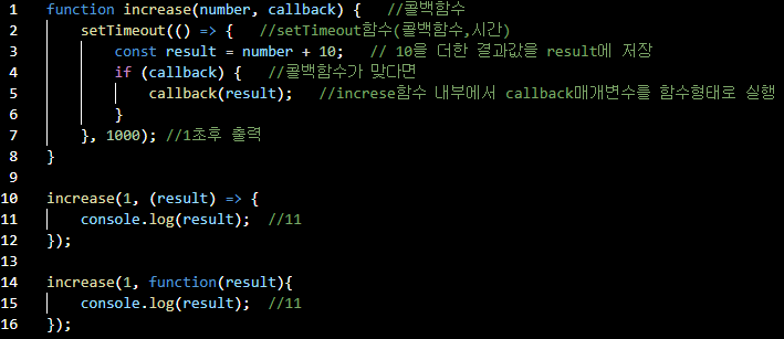 - 콜백함수에서 사용하면 매우 간결하게 표현가능
