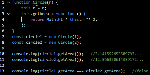 - 즉, 생성자함수가 생성하는 모든 인스턴스는 하나의 getArea를 공유