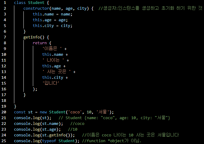 - 생성자 함수에 의해 생성된 객체를 인스턴스라고 함.