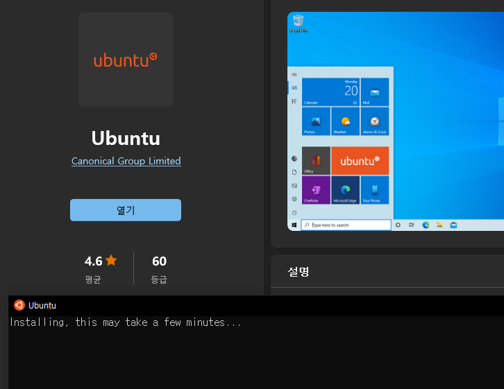 - Microsoft Store에서 우분투앱을 재설치 하려는 상황