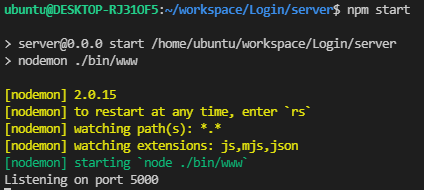 - 기본포트 : 3000 에서 추후 리액트 연결을 위해 5000으로 변경